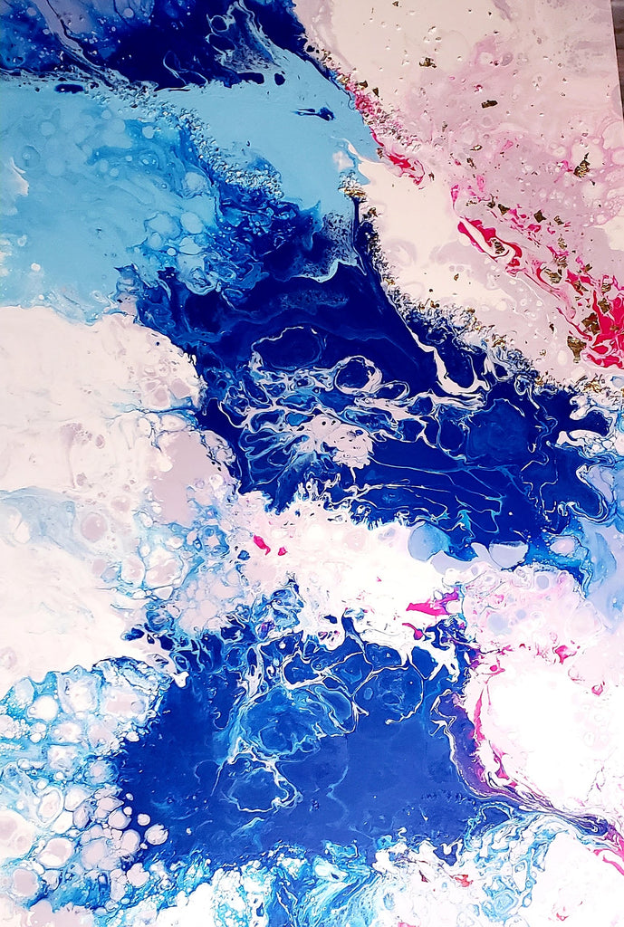 It is a mixed media artwork painted using mainly acrylic paints and acrylic medium mixed with some silicone to provide varying textures. I used crushed mirror and gold leaf as embellishments.